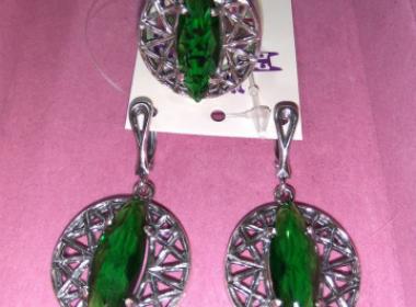 Яркий комплект! Посеребрение! Вставка изумруд синтетический.! размер кольца 17,5. Комплект с качественным посеребрением. Легкий. приятный в носке. Очень красивого цвета вставка. Эффектный и заметный комплект!